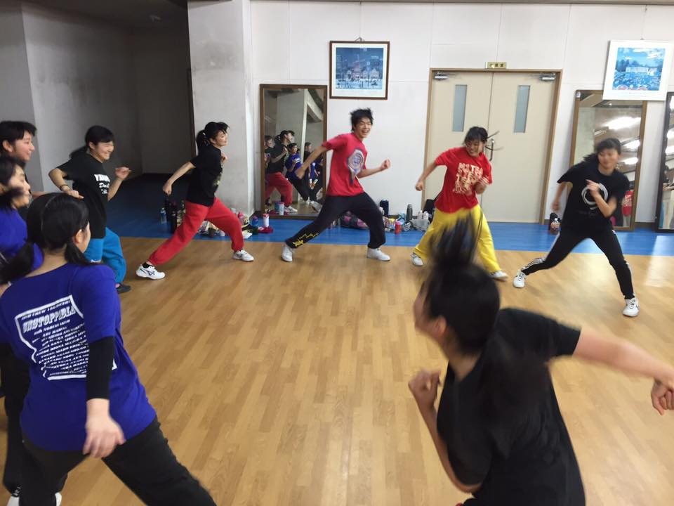 午前は奈高部長が中心となってグループに分かれてフリ作りを行い、皆たった数時間前に出会ったとは思えないほど仲良くなっていました^ ^