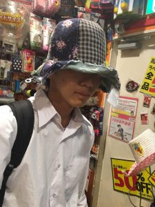 ↓おばあちゃんみたいな帽子をかぶっているまさむね